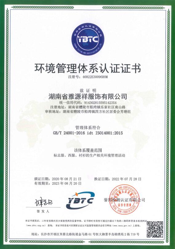 1、企業(yè)概況 湖南省雅源祥服飾有限公司地處湘贛邊境素有瓷城之稱的醴陵郊區(qū),企業(yè)創(chuàng)建于1995年,是行政執(zhí)法制服、被裝的生產(chǎn)企業(yè)。2、組織機構(gòu) 跟隨改革開放的步伐,我公司不斷發(fā)展壯大,公司董事會下設(shè)總經(jīng)理辦公室、生產(chǎn)部、技術(shù)部、質(zhì)檢部、財務(wù)部、采購部、業(yè)務(wù)部等部門,下設(shè)有流水線西服生產(chǎn)車間、標(biāo)志服生產(chǎn)車間、襯衣生產(chǎn)車間、... [更多]